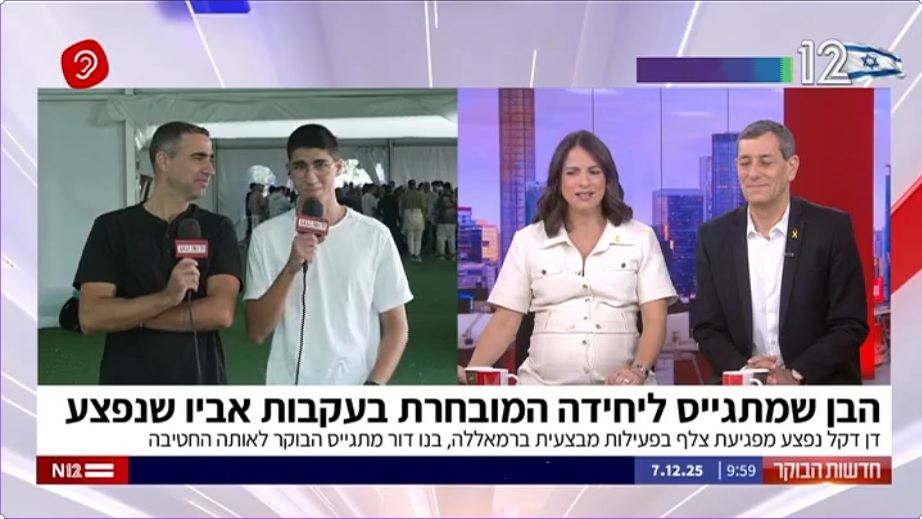 חדשות הבוקר | 12 ראיון בשידור מהבקו״ם, ד. דקל הבן התגייס הבוקר לכפיר בעקבות אביו, דן דקל אשר שירת בגדוד דוכיפת ונפצע במהלך פעילות מבצעית ברמאללה
