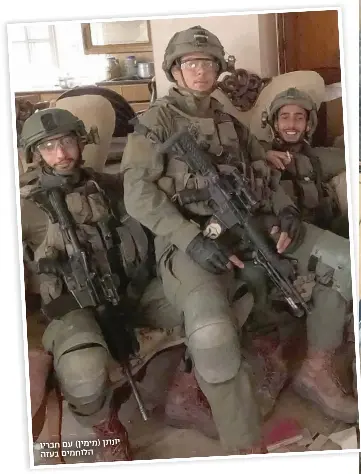 יונתן נלחם עם חבריו בסג'עייה. "היינו אמו רים לתקוף שם מטרות עם אור הבוקר", הוא משחזר. "חמש דקות לפני התקיפה ירו עלינו פצצת מרגמה וקיבלתי רסיס בראש. פינו אותי במצב קשה לביה"ח סורוקה. כשהגעתי לשם התעוררתי. החליטו לא להוציא לי את הרסיס מהראש כי זה היה מסוכן. התאוששתי מהר מאוד. הרגשתי רע מאוד שאני לא עם החברים שלי בעזה. רציתי רק להילחם איתם, להיות שוב בפנים ולעזור בכל המשימות. לא עניין אותי הרסיס בראש וכל הבומבה הזאת שחטפ תי. שיגעתי שם את כל בית החולים. בהתחלה אסרו עלי לחזור עקב מצבי, אבל אחרי כמה ימים, אין לי מושג איך, קיבלתי אישור ומייד חזרתי לעזה".
