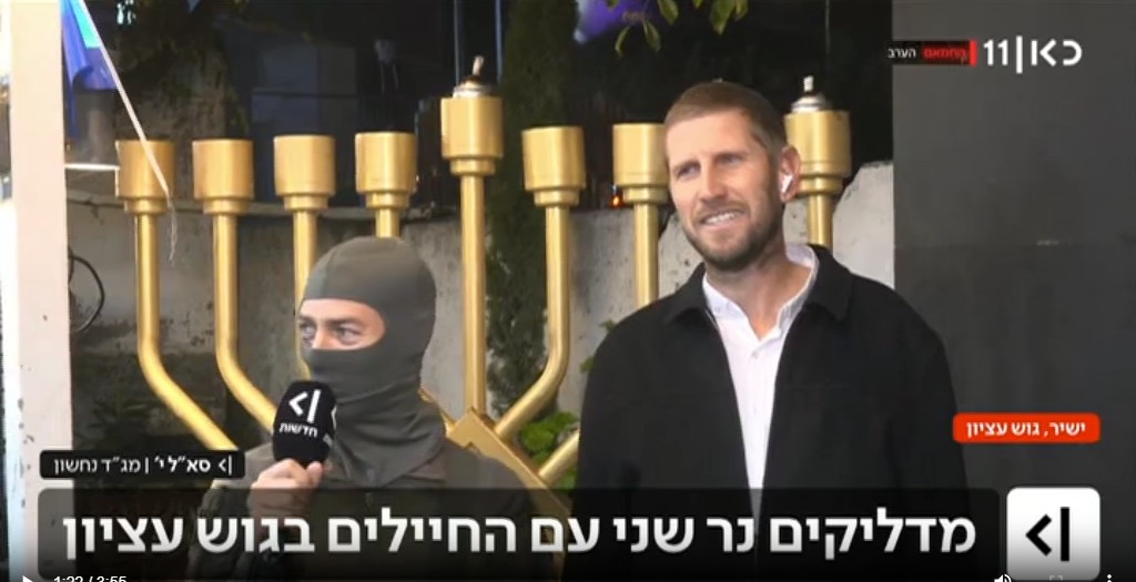 ראיון של מג״ד נחשון, סא״ל י. בהדלקת נר שני של חנוכה יחד עם תלמידי ישיבת אורות יהודה ולוחמי הגדוד בגוש עציון.